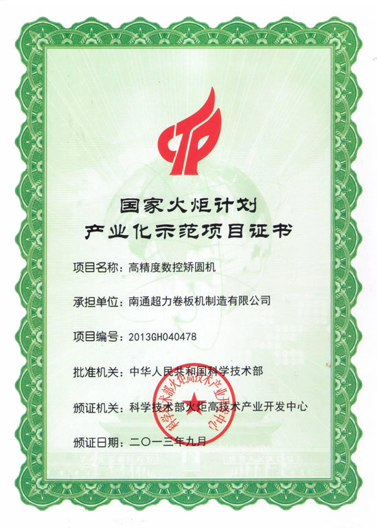 該產品評為江蘇省高新技術產品,并列為國家火炬計劃產業示范項目。